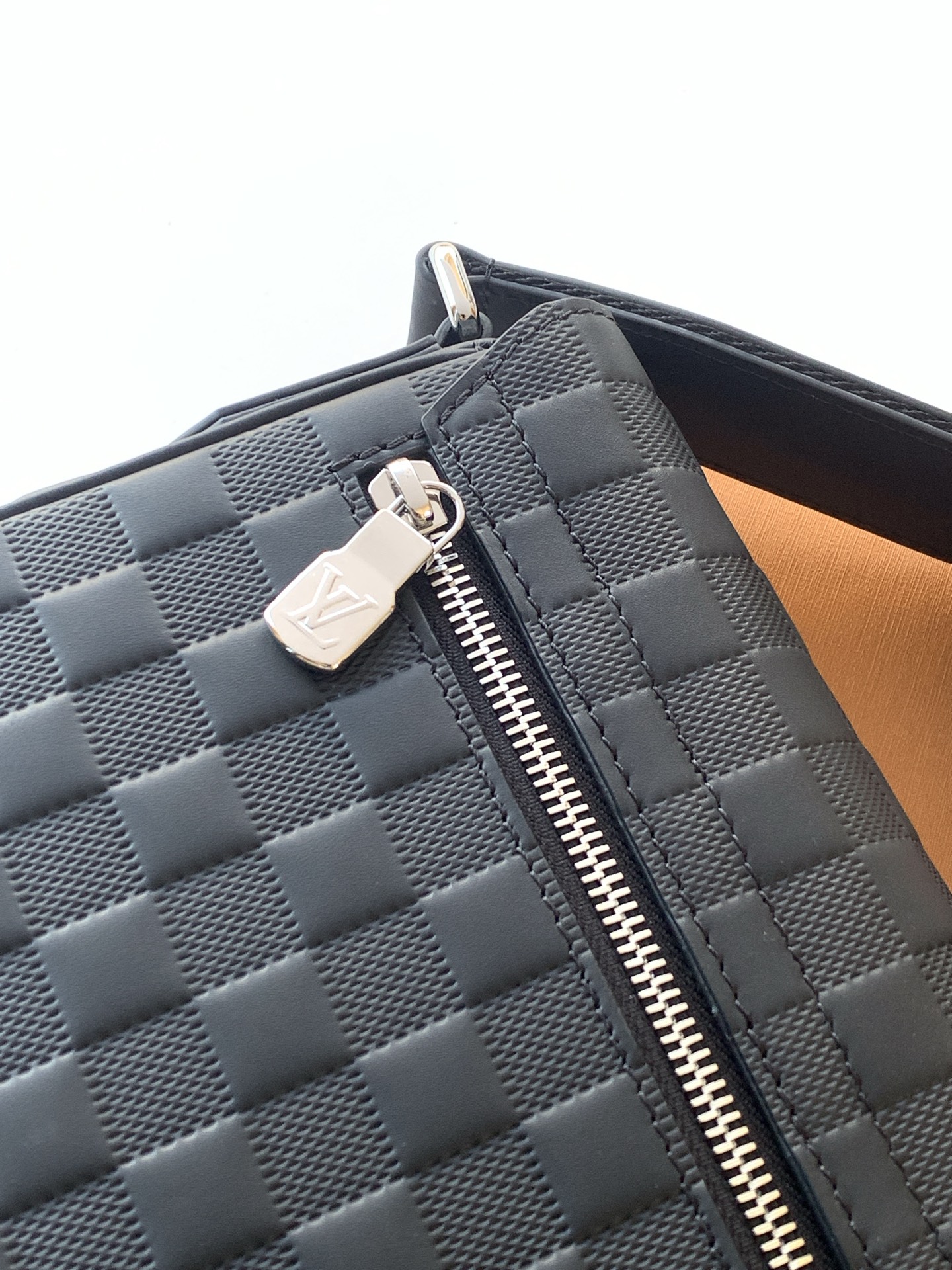 شعار “Louis Vuitton” منقوش بأناقة على قطع السحّاب والأطراف الجلدية